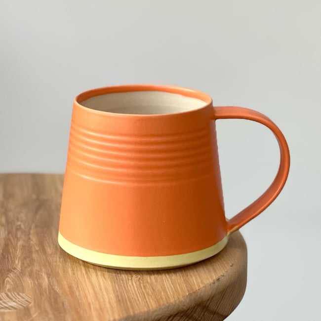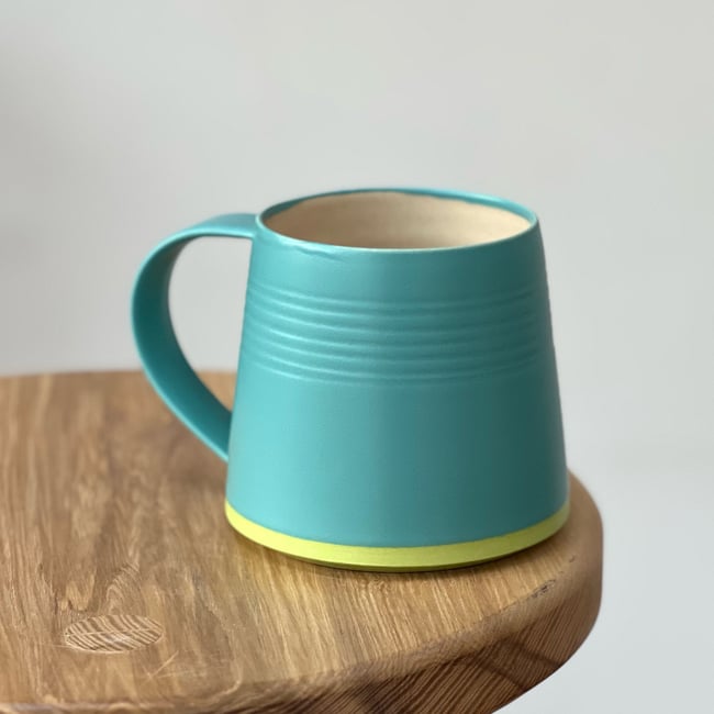Thrown by hand on the wheel in white, earthenware clay, each mug is unique and lovingly crafted.