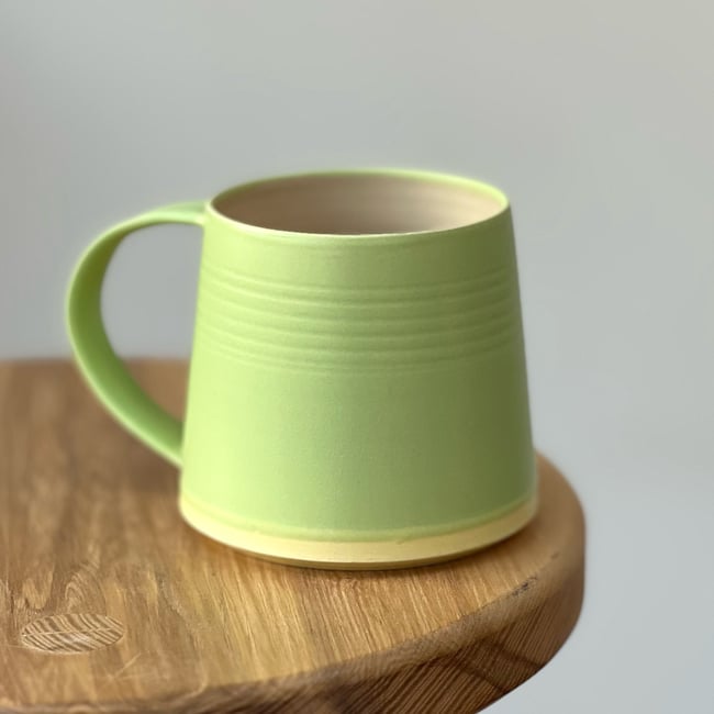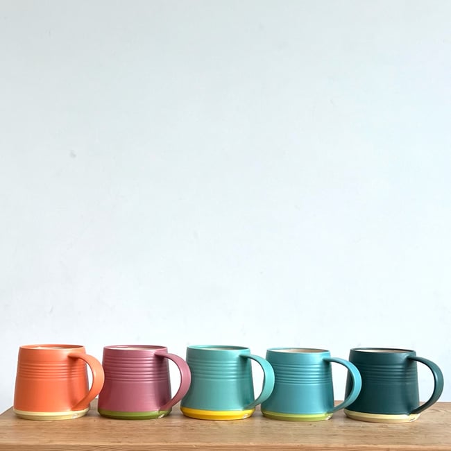 Thrown by hand on the wheel in white, earthenware clay, each mug is unique and lovingly crafted.